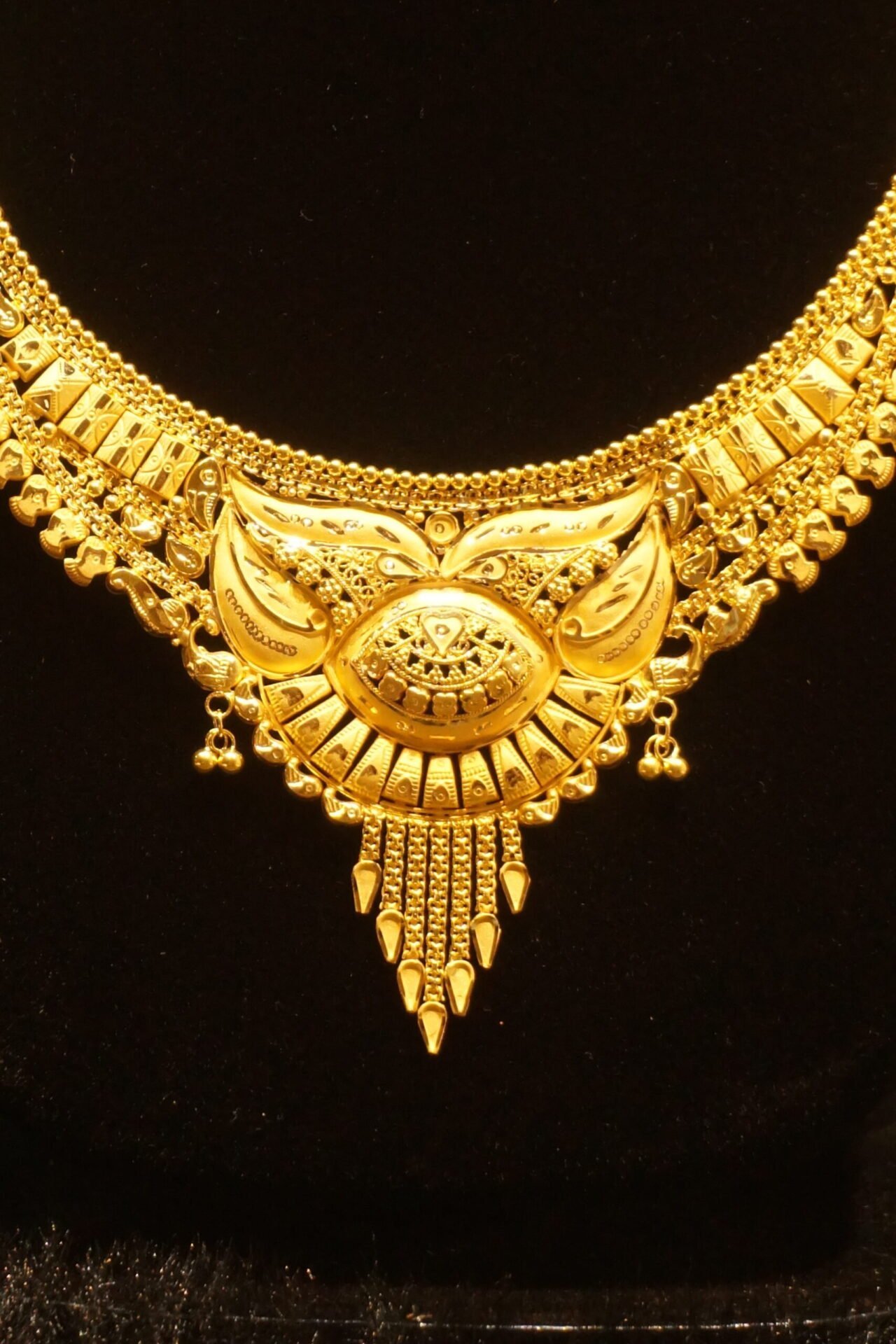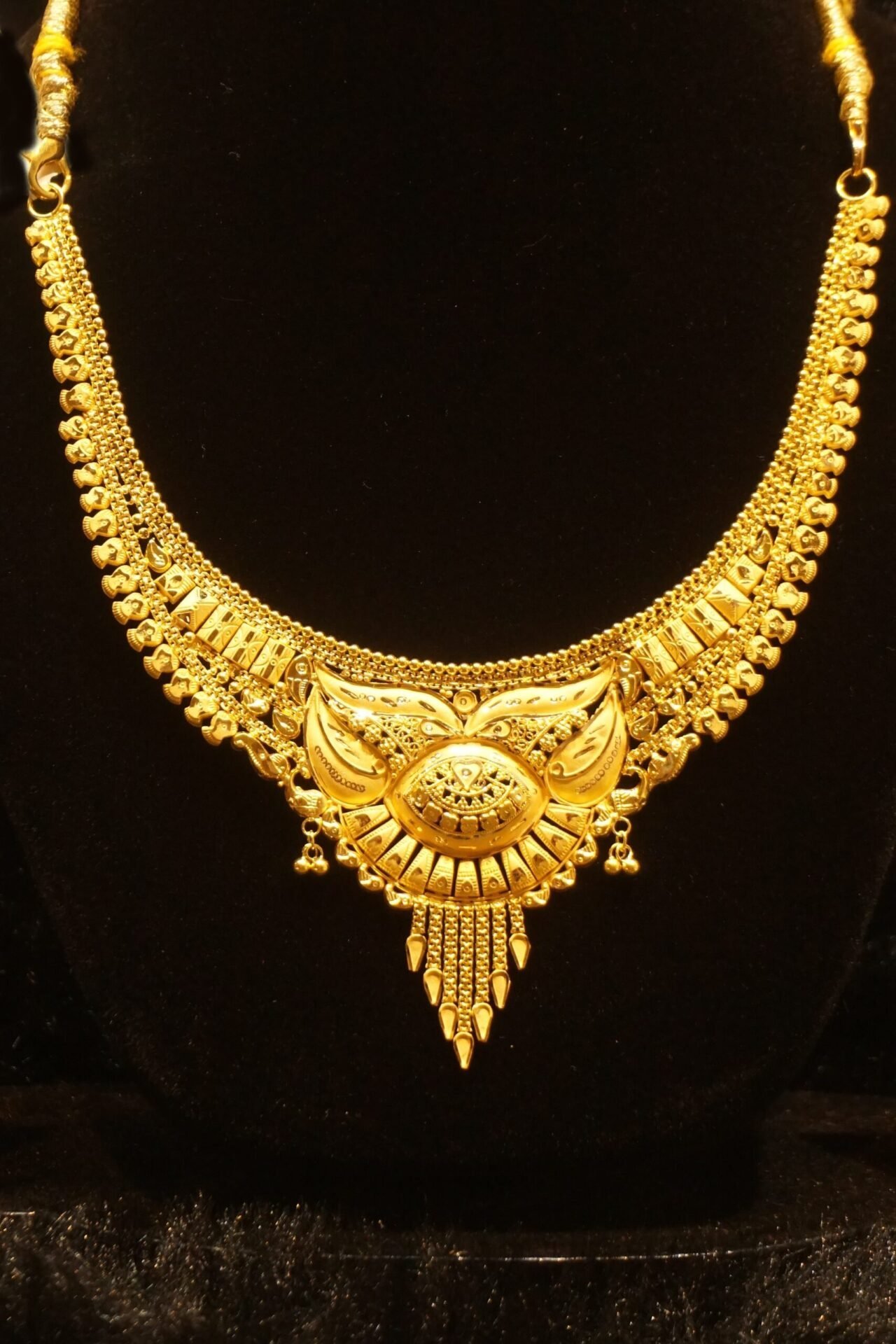 Intricately designed patterns give this necklace set a traditional flair cafted in Yellow Gold. Gross Weight: 11.850 GRAMS Net Weight: 11.850 GRAMS M Code: AJ456