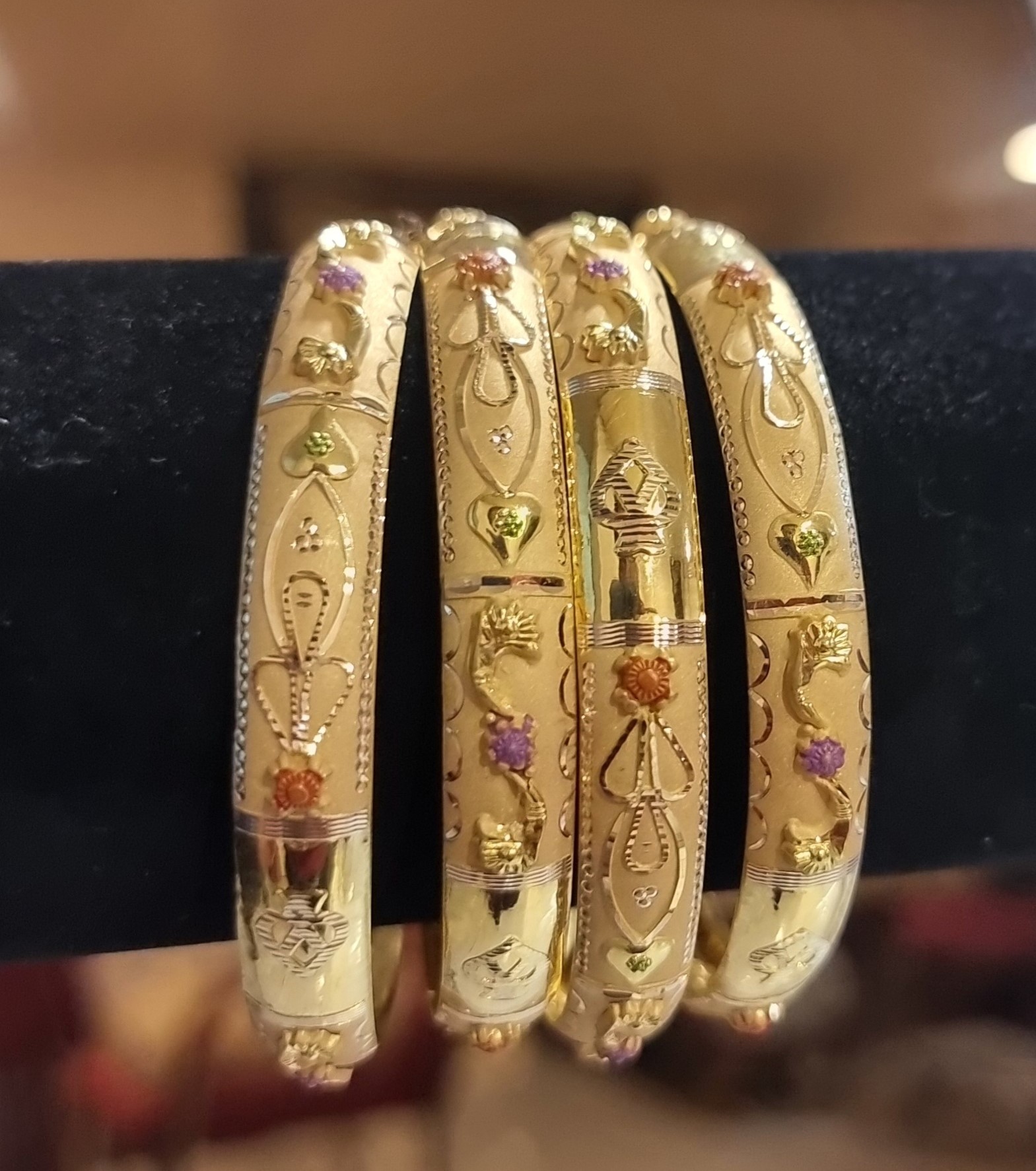 Beautiful PAPER BANGLES (4 PC) Crafted In 18 Karat Yellow Gold. Gross Weight : 20.000 Grams Net Weight : 20.000 Grams Purity : 18 Karat *Also Available In 20 K and 22 K On Order.