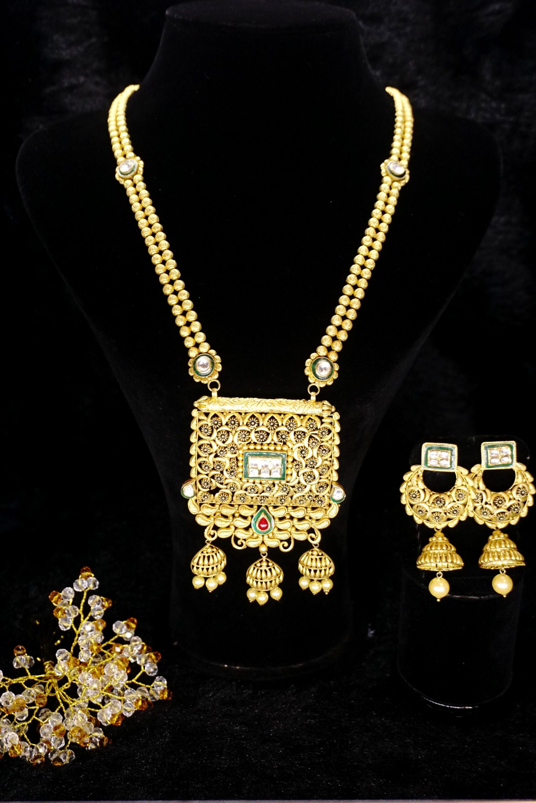 Beautiful Design Long Necklace with Earring Crafted in 18 Purity Yellow Gold.