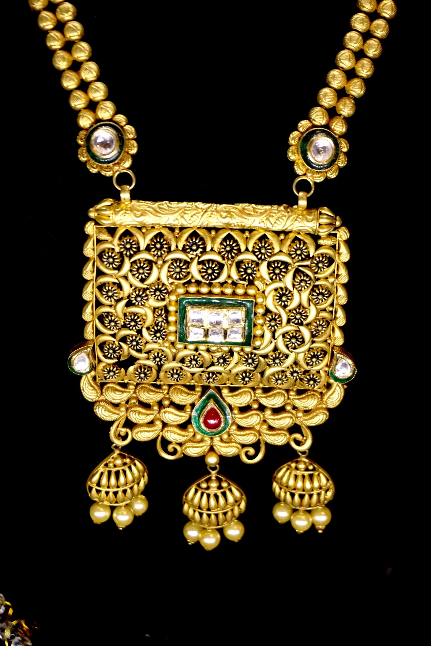 Beautiful Design Long Necklace Crafted in 18 Purity Yellow Gold. Gross Weight: 28.780 Grams Net Weight: 25.480 Grams EARRINGS- Gross weight- 9.350 Grams Net Weight: 7.400 Grams TOTAL- 25+7= 32 Grams Long Necklace Set: Yes Purity: 18K